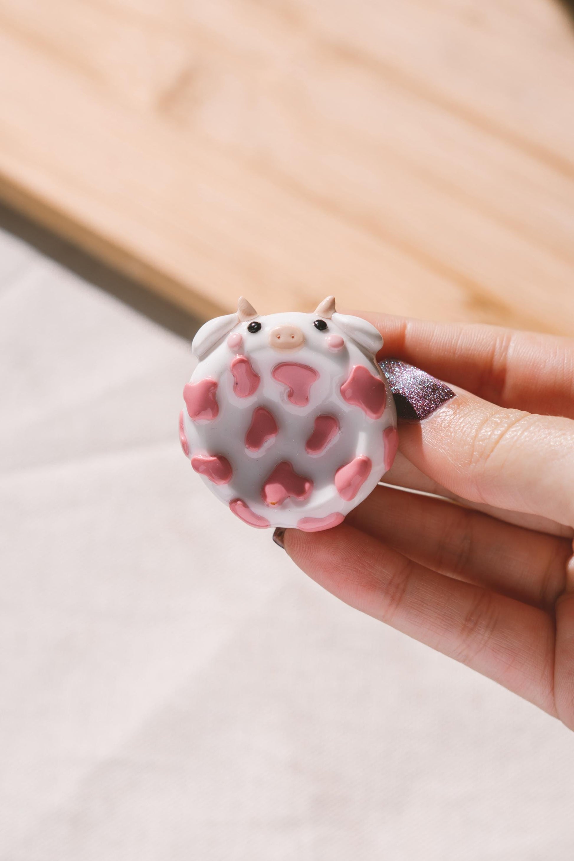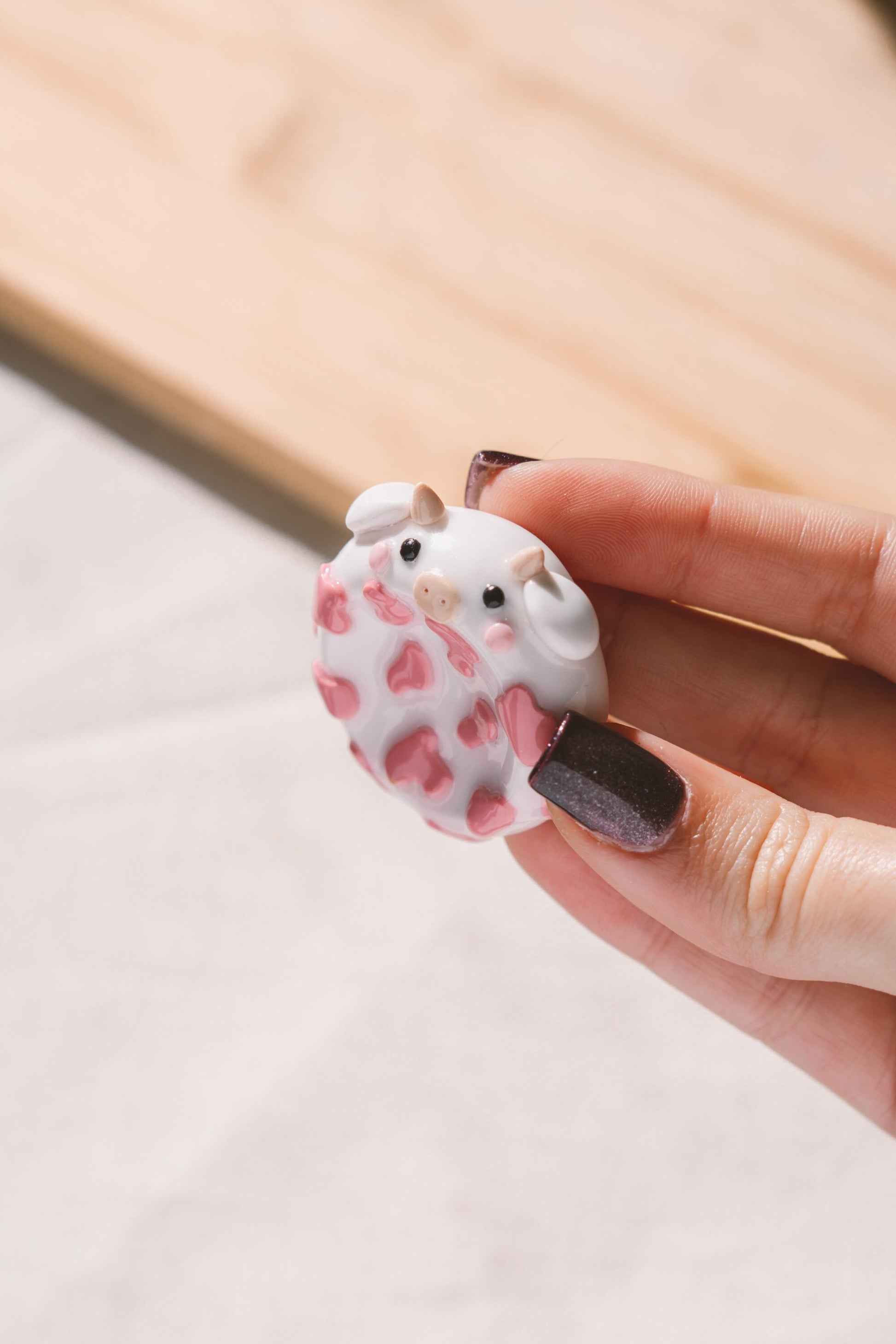 Worry stone artesanal em forma de Vaquinha, ideal para aliviar stress e ansiedade com toque suave e relaxante e trazer um pequeno ritual de tranquilidade à tua rotina.